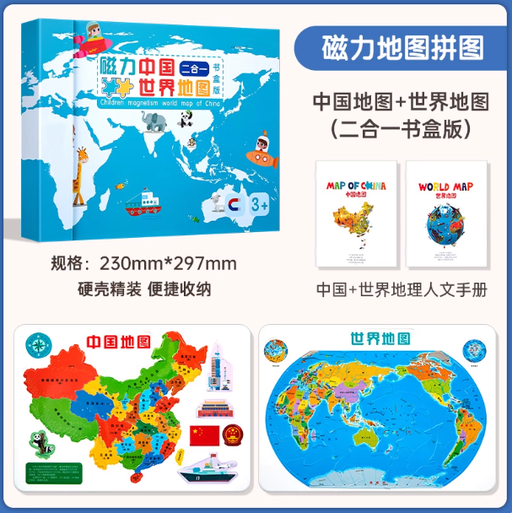 Magnetic Map Jigsaw Puzzles 磁力地图拼图 中国地图&世界地图二合一书盒装