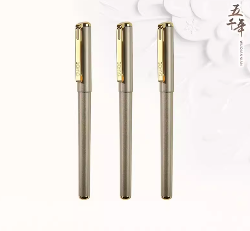 WQN Gel Ink Pen - Black Ink 0.7mm Gold 五千年中性笔 0.7mm 金色
