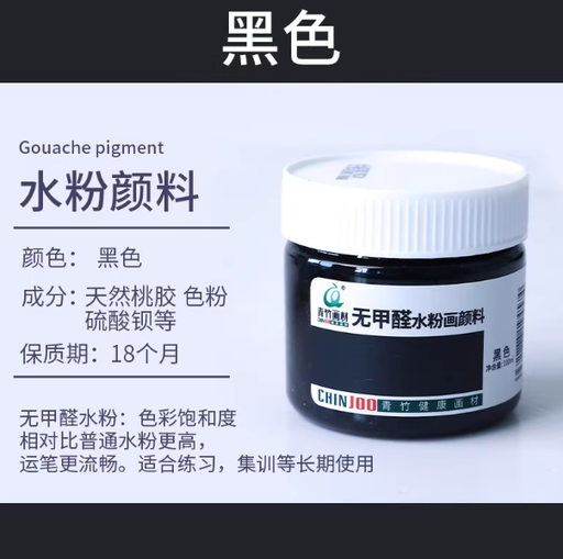 Qingzhu Formaldehyde-free Gouache Pigment - 100ml 青竹无甲醛水粉画颜料100ml 黑色