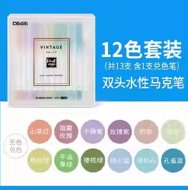 DS Stationery 2002D Water Based Dual Brush Markers 13pcs Set点石复古色软硬双头水性马克笔13支装