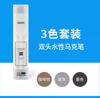 DS Stationery 2002D Water Based Dual Brush Markers 3pcs Set点石复古色软硬双头水性马克笔3支装 灰色系 墨色/鼠灰/咖啡棕