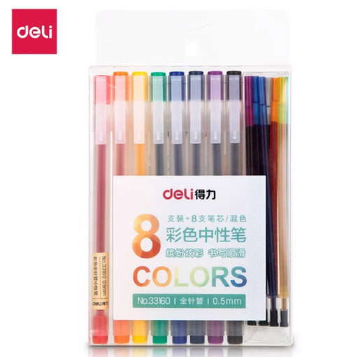 DELI No.33160 Colored Gel Ink Pen 8Pcs Set with 8 Refills 得力33160彩色中性笔8支装+笔芯8支