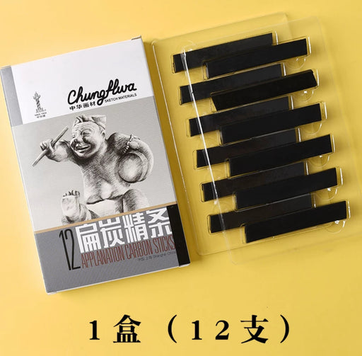 CHUNGHWA Applanation Carbon Sticks 12pcs Black 中华牌 扁炭精条 黑色 12支