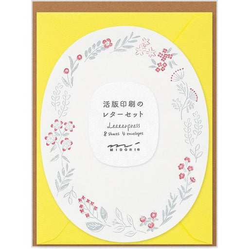 MIDORI Letterpress Die-Cut Letter Set - Wreath Red 日本midori活版印刷信封信纸套装 红色花环