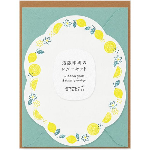 MIDORI Letterpress Die-Cut Letter Set - Lemon 日本midori活版印刷信封信纸套装 柠檬