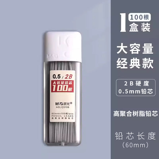 M&G High Capacity Mechanical Pencil Leads - 0.5mm 2B 100PCS 晨光大容量自动铅笔芯0.5mm 2B 100根装