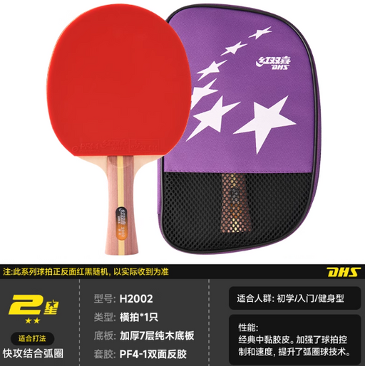 DHS H2002 Table Tennis Paddle - Shakehand Grip 2 Star 红双喜H2002乒乓球拍 横拍 2星级