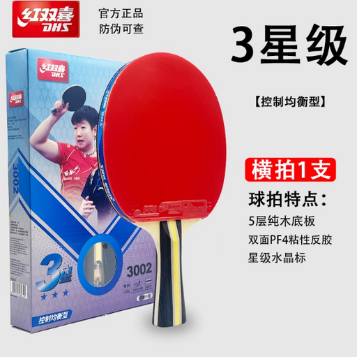 DHS H3002 Table Tennis Paddle - Shakehand Grip 3 Star 红双喜H3002乒乓球拍 横拍 3星级