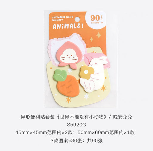 CardLover Artistic Memo Stickers Set 信的恋人 异形便利贴套装 世界不能没有小动物 晚安兔兔