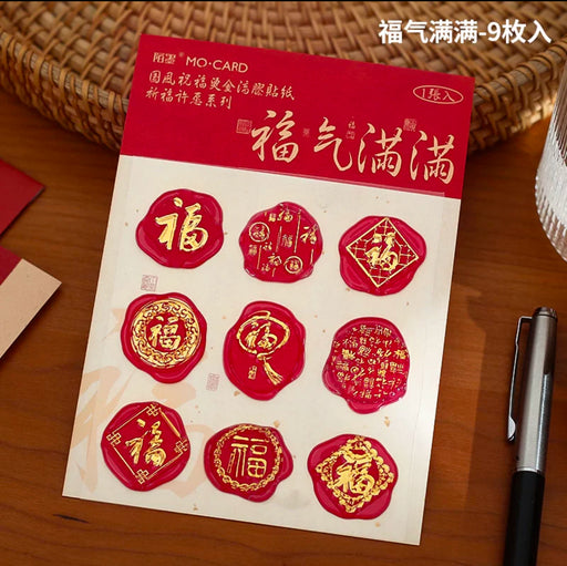 Chinese Style Decorative Gilded Stickers 国风祝福烫金滴胶贴纸 火漆贴纸 福气满满
