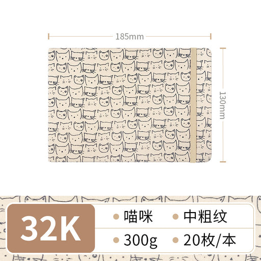 Fabric Watercolor Sketchbook 布艺水彩本300g 32K 中粗 20页 喵咪