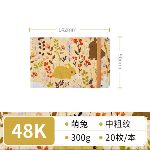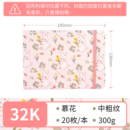 Fabric Watercolor Sketchbook 布艺水彩本300g 48K 细纹 20页 萌兔