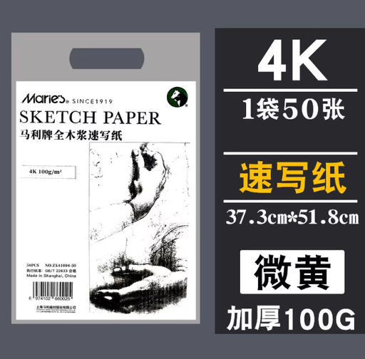 Marie's 100% Wood Pulp Sketch Paper - 4K 50PCS 100g 马利全木浆速写纸 4开 50张 100g