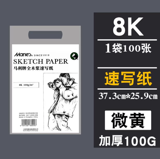 Marie's 100% Wood Pulp Sketch Paper - 4K 100PCS 100g 马利全木浆速写纸 4开 100张 100g