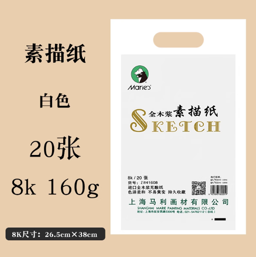 Marie's 100% Wood Pulp Exam-Specific Sketch Paper - 8K 20PCS 180g 马利全木浆纸浆考试专用素描纸 8开 20张 180g