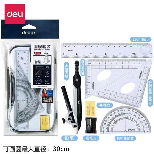 DELI 8-Piece Compass Set 得力72151圆规尺子8件套