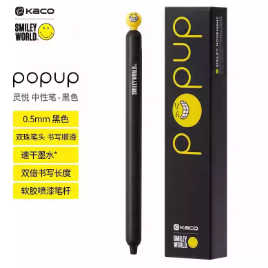 KACO & SMILEY WORLD POPUP Gel Ink Pen 0.5mm Black Ink - Black KACO联名SMILEY WORLD系列POPUP灵悦中性笔 0.5mm黑色墨水 黑色笔杆