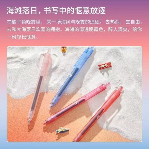 KACO Beach Sunset Series Plastic Gel Ink Pen Set 4Pcs新款限定菁点 海滩落日 中性笔4支装黑色水笔芯0.5按动式低重心