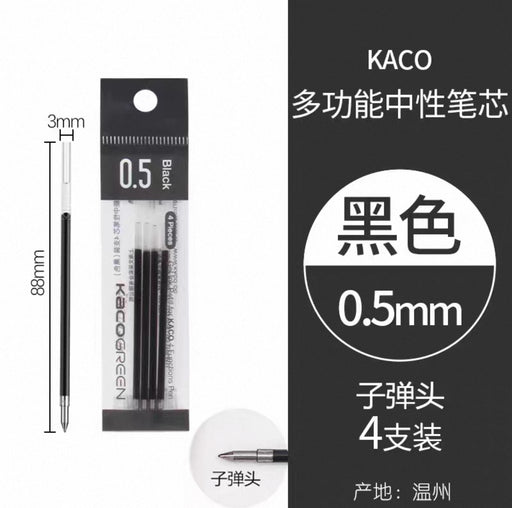 KACO EASY 4 FUNCTIONS PEN Refiils - 0.5mm Black KACO多功能中性笔芯 子弹头0.5mm黑色 4支装