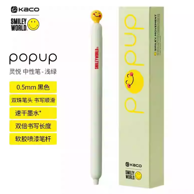 KACO & SMILEY WORLD POPUP Gel Ink Pen 0.5mm Black Ink - Light Green KACO联名SMILEY WORLD系列POPUP灵悦中性笔 0.5mm黑色墨水 浅绿色笔杆