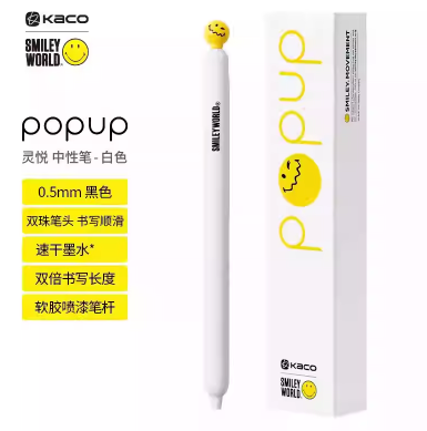 KACO & SMILEY WORLD POPUP Gel Ink Pen 0.5mm Black Ink - White KACO联名SMILEY WORLD系列POPUP灵悦中性笔 0.5mm黑色墨水 白色笔杆