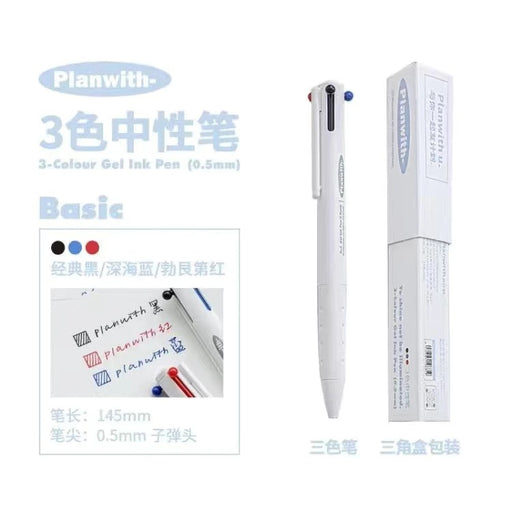 Planwith 3-Color Gel Ink Pen - Black/Blue/Red 友计划三色中性笔 经典黑/深海蓝/勃艮第红 白色笔杆