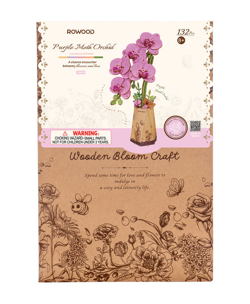 Rowood DIY Flower Purple Moth Orchid 3D Wooden Puzzle TW091 若物木艺繁花拼图立体3D模型 紫蝴蝶兰